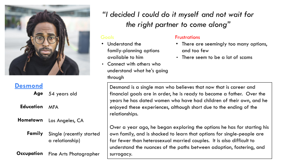The goal i set for myself was to design a mobile and responsible website to demystify the path to parenthood for singles and connect them to support services.